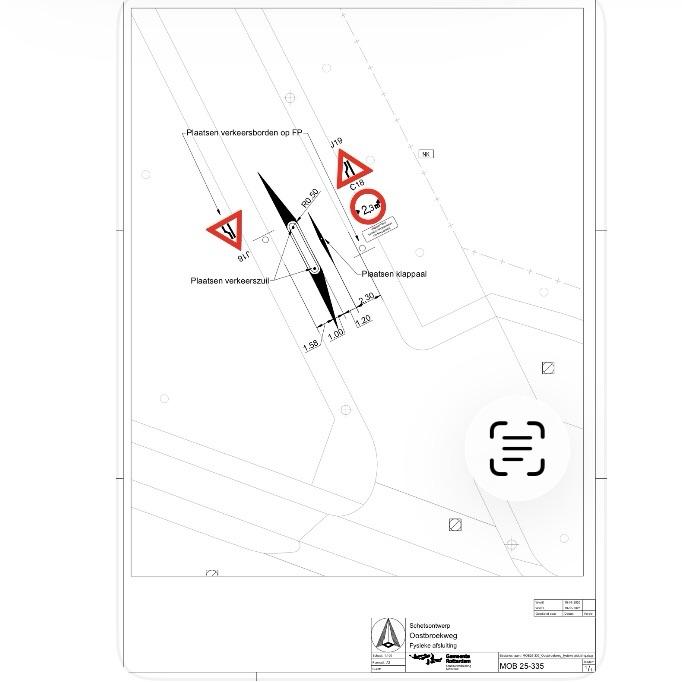 Fysieke versmalling en verkeersbord