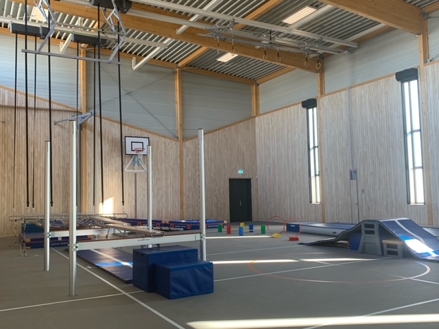 De nieuwe gymzaal ziet er prachtig uit. Het is een energie opwekkende en onderhoudsvriendelijke gebouw. Het is een gebouw met een houten, demontabele constructie. Het gebouw bestaat uit een entreegebied dat als bijeenkomstenruimte kan fungeren, de zaal van 364 m², twee toiletten, twee kleedruimtes, één kleedruimte voor de instructeur/instructrice en twaalf douches.